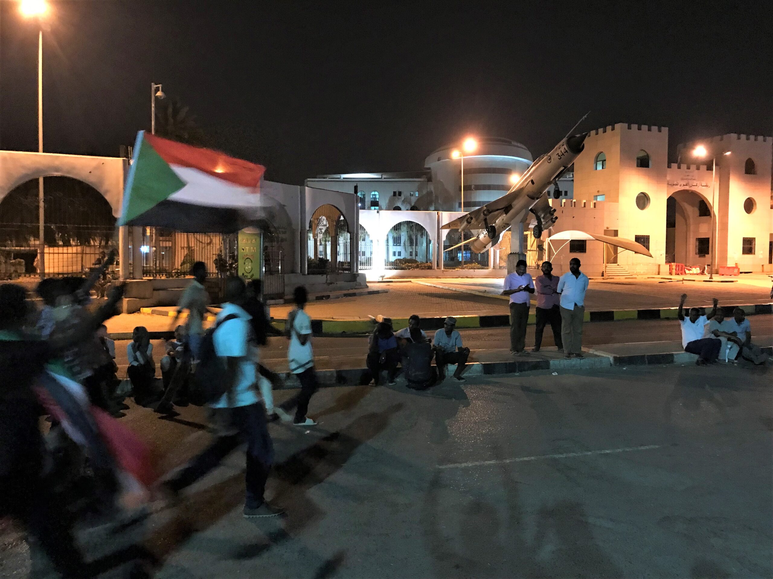 „Protest vor Militärhauptquartier Khartoum während Revolution. Hauptquartier jetzt in Port Sudan“ Foto Julia Kramer