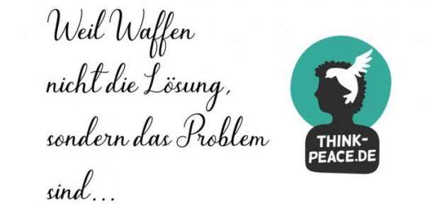 Es gibt die Motive: „Kämpfst du noch oder denkst du schon?“ hier, „Weil Waffen nicht die Lösung, sondern das Problem sind…“ hier und „Lieber die Taube im Kopf als das Gewehr in der Hand“ hier.