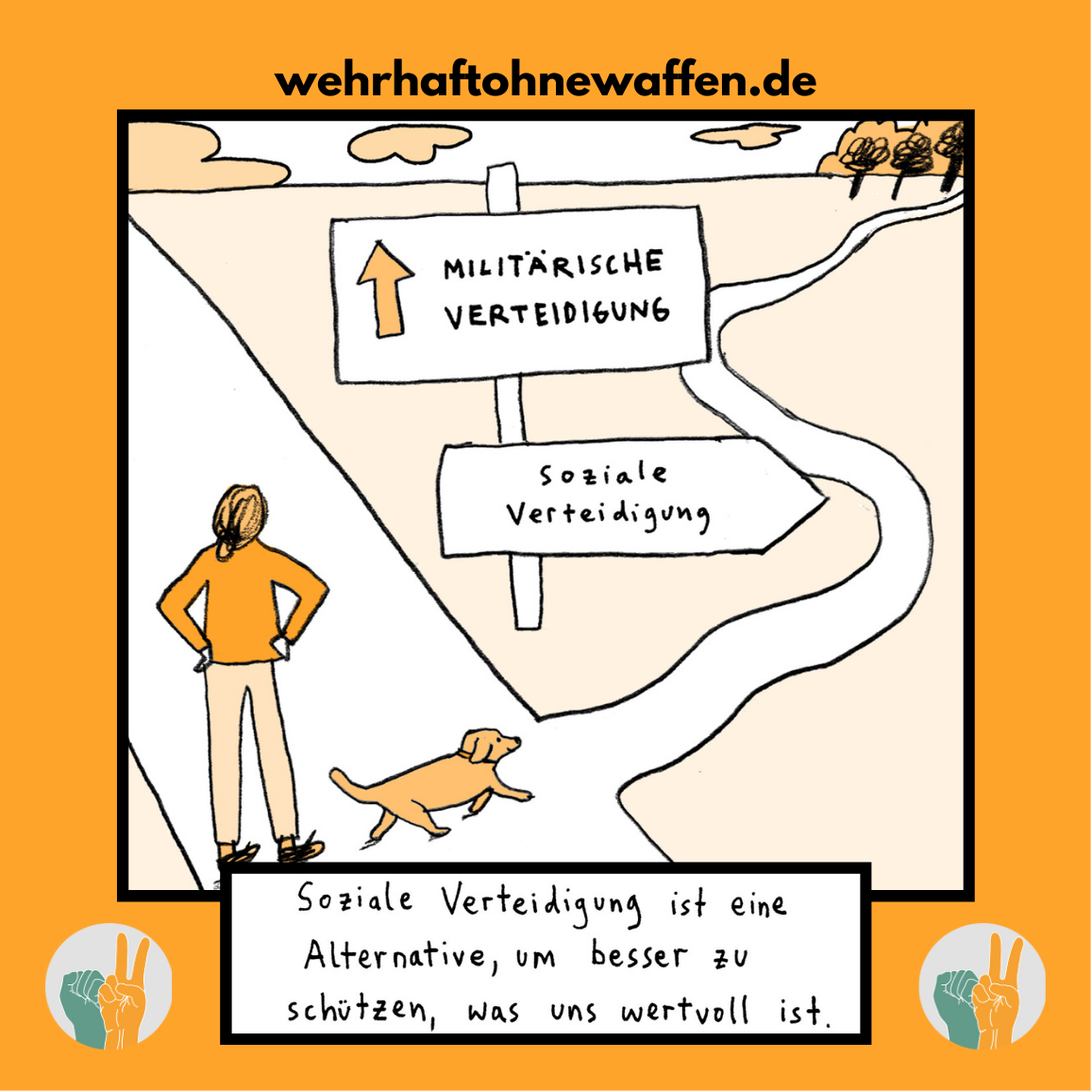 Sticker: Comic Wehrhaft ohne Waffen „SozialeVerteidigung als Alternative“
