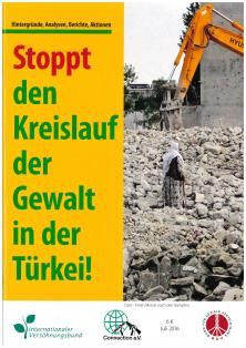 Im August 2015 begann erneut der gewaltsame Konflikt zwischen der türkischen Regierung und bewaffneten kurdischen Gruppen in der Türkei. Mit der im Juli 2016 erschienenen Broschüre dokumentieren wir Berichte über den Krieg, die Realität der Ausgangssperren und der Straßenkämpfe. Verschiedene Organisationen kommen mit eigenen Stellungnahmen zu Wort. Wir zeigen auch auf, welche zivilen Widerstandsformen, welche Solidaritätsarbeit und welche Aktivitäten es gegen den Krieg gibt.