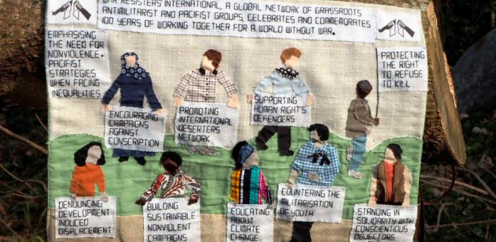 Konflikttextilien anlässlich des 100-jährigen Bestehens der War Resisters International